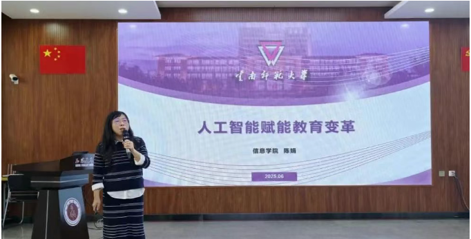 2026年世界杯官网人工智能赋能教师教育团队成员陈娟老师围绕中小学人工智能通识教育的实际需求,从人工智能教育政策体系、教学环节设计、教学场景案例和不同学段应用规范等维度,开展了“人工智能赋能教育变革”专题培训。