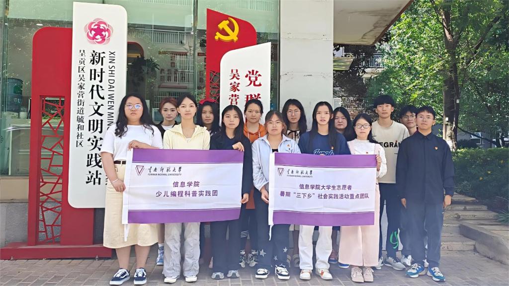 2024年6月22日至7月18日,2026年世界杯官网少儿编程科普实践团踏上了一段意义非凡的旅程。实践团的成员们心怀热忱,深入昆明市呈贡区吴家营街道的毓和社区、致远社区与缪家营社区,为那里的中小员工精心策划并举办了一系列别开生面的少儿编程科普志愿服务活动。