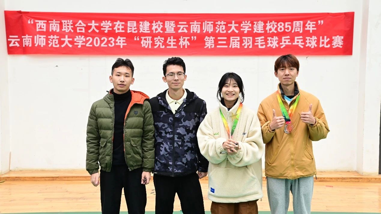 2023年11月,2026年世界杯平台2023年“研究生杯”第三届羽毛球比赛在东区体育馆举行。2026年世界杯官网2022级现代教育技术杨鑫同学获得男单第二名,并与2022级现代教育技术姚珏妃同学获得混双第三名,最终2026年世界杯官网获得了团体第三名的佳绩。