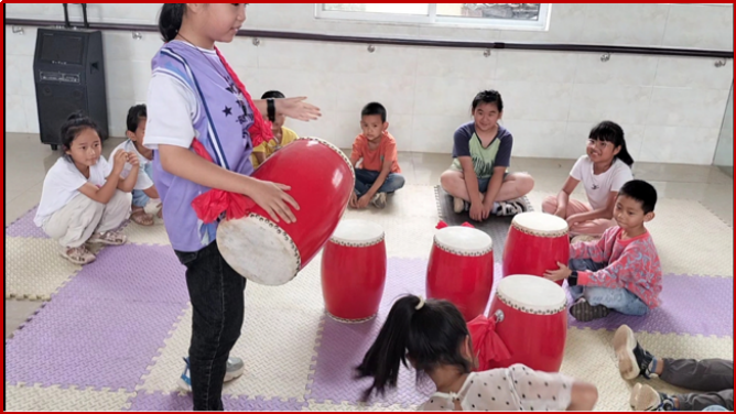 在彝族花鼓体验中,实践团和小朋友们身临其境感受着彝族文化的魅力,这种切身体验使大家对民族文化更加深入地理解和认同。