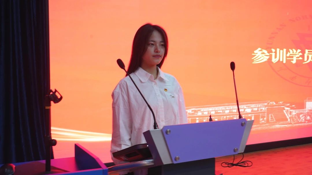 随后,参训学员代表杨子萱同学发言。她表示,全体学员将坚持理论联系实际,积极参与社会实践,提升综合素养,努力成长为有理想、敢担当、能吃苦、肯奋斗的新时代好青年,决心用实际行动书写无愧于时代的青春奋斗答卷。