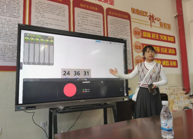 子项目3的参训学员安宁市宁湖小学语文张凌芝分享了信息化设备在教学中的应用的经验,示范了使用宁湖小学与企业合作开发的课堂助手收集与应用课堂互动数据的过程。