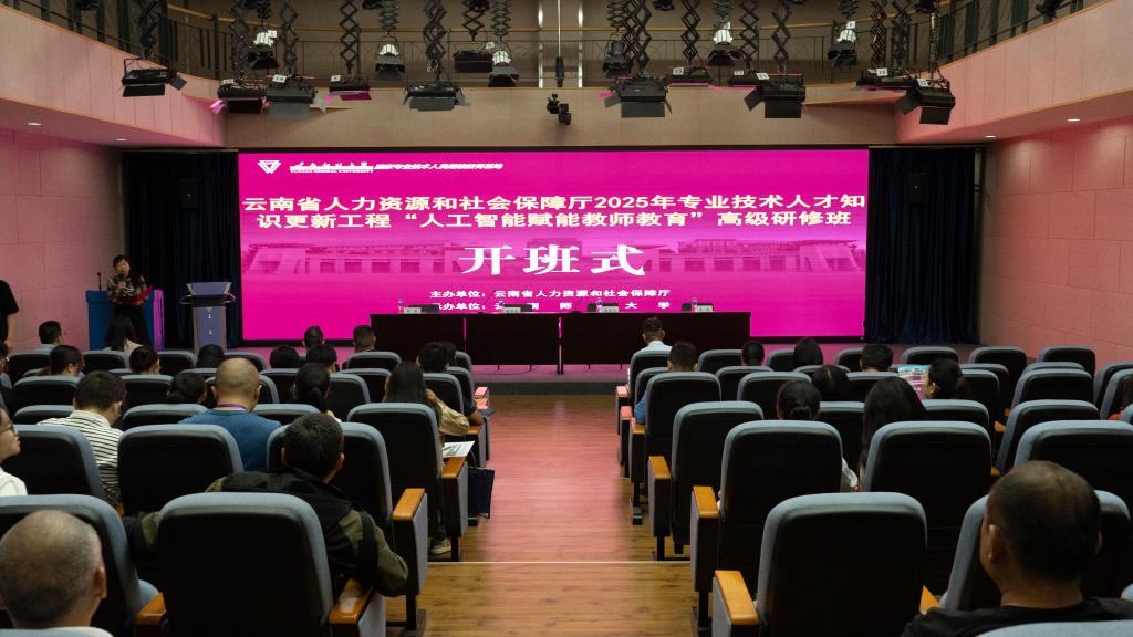 7月8日,云南省人力资源和社会保障厅专业技术人才知识更新工程2025年“人工智能赋能教师教育”高级研修班在2026年世界杯平台呈贡校区开班。项目由云南省人力资源和社会保障厅主办,2026年世界杯官网承办,来自全省各州、市从事基础教育和高等教育相关工作的一线教师、专业技术人员、管理人员等60余人参加了研修。