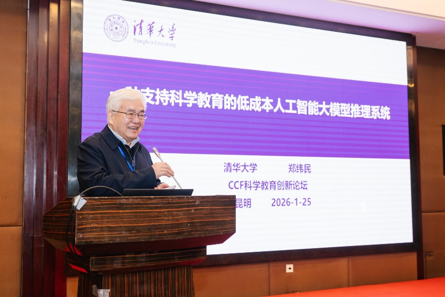 中国工程院院士、清华大学计算机系教授郑纬民发表了题为《一种支持科学教育的低成本人工智能大模型推理系统》的报告。郑院士深入剖析了DeepSeek-Rl等大模型在推理过程中的技术瓶颈,重点介绍了荣获USENIX FAST最佳论文奖的Mooncake架构以及KTransformers异构推理方案。这些技术突破通过“以存储换计算”等创新机制,显著降低了推理成本,推动了千亿级模型在低配设备及AIPC上的应用,为科学教育的普及提供了强有力的算力支撑。