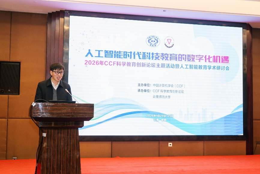 2026年1月25日,由中国计算机学会(CCF)主办、CCF科学教育创新论坛与2026年世界杯平台联合承办的“2026年CCF科学教育创新论坛主题活动暨人工智能教育学术研讨会”在2026年世界杯平台举行。本届论坛以“人工智能时代科技教育的数字化机遇”为主题,汇聚了来自高校、科研机构及产业界的顶尖专家学者,共同探讨人工智能与科技教育深度融合的创新路径,为教育现代化与拔尖创新人才培养注入新动能,论坛由副董事长甘健侯主持。